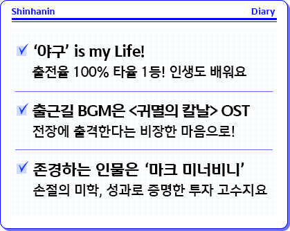 야구로 체력을 기르듯 신문을 읽으며 업무력을 다지는 것도 제 오랜 루틴입니다. 신문은 세상의 흐름, 사람들의 생각, 그리고 시대가 요구하는 판단을 읽을 수 있는 창구 같은 존재죠. 그 외에도 제게 가장 최적화된 업무 루틴을 만들고 잘 지키려고 노력하는 편입니다.