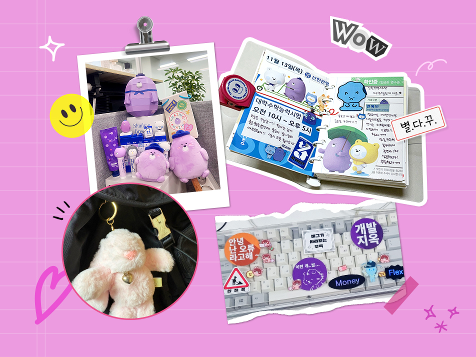 출근부터 퇴근까지 제일 오래 같이 있는 동료! 바로 키보드죠. 조용하지만 제 일을 가장 많이 도와주는 키보드를 다양한 스티커로 꾸몄습니다.