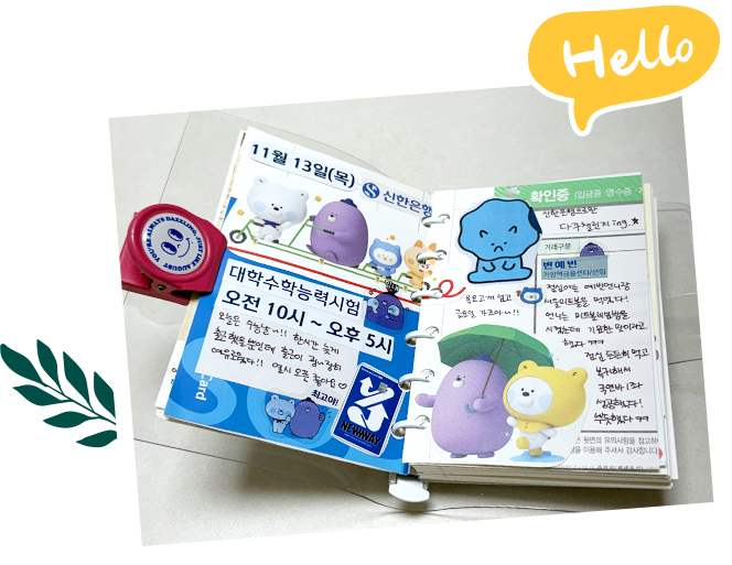 신한은행으로만 다꾸 챌린지 중입니다! 귀여운 신한 프렌즈 덕분에 다이어리를 펼칠 때마다 기분이 좋아요.