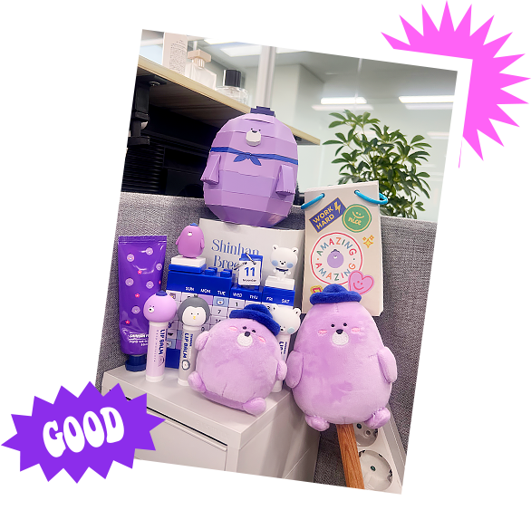 사무실 책상 한쪽을 신한 프렌즈 ‘몰리’로 꾸민 몰리존입니다. 피규어부터 인형, 캘린더, 핸드크림, 립밤 등 다양한 몰리 굿즈를 모아 작은 테마존처럼 구성했어요. 몰리 특유의 포근함 덕분에 업무 중에도 작은 힐링이 되는 공간입니다.